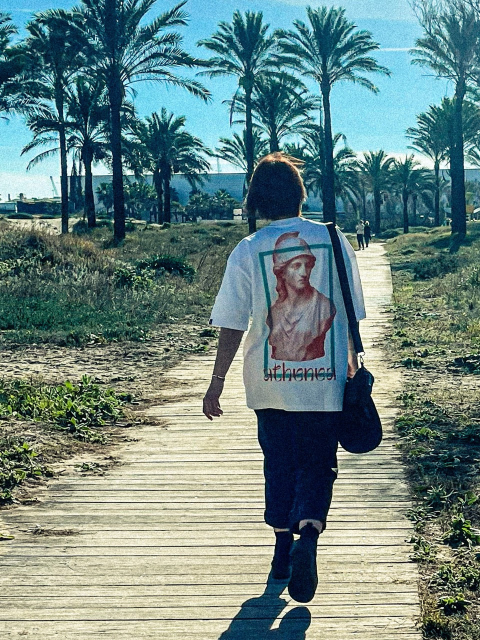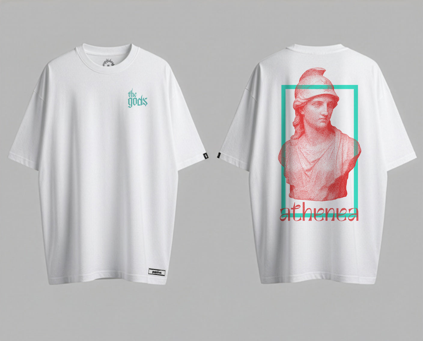 Pure white base like the marble of her temple. Blood red typography that screams strategy, intellect, calculated fury. The contrast is sharp, tactical, lethal. Like Athena herself: mind and might in perfect balance.